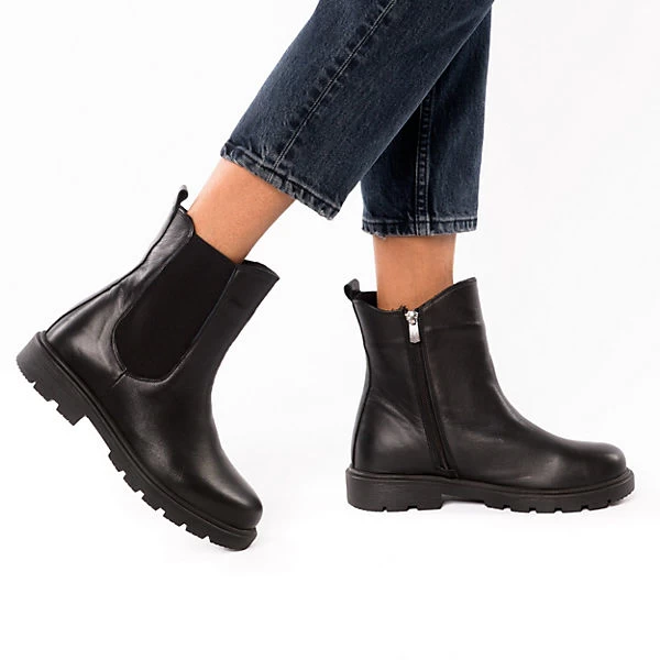Unterstreichen viele verschiedene Outfits: Diese modischen Chelsea Boots der Marke Andrea Conti. Das Obermaterial zeichnet sich durch das echte Leder aus. Der bequeme Blockabsatz bietet einen ansprechenden Auftritt. Für ein angenehmes Tragegefühl besteht die Decksohle aus Leder. Der Schuh ist mit einem Reißverschluss versehen.