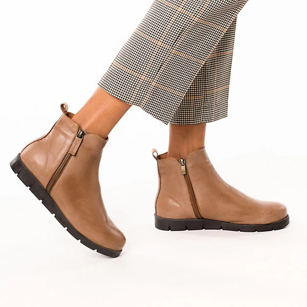 Ergänzen verschiedenste Looks: Die modisch aktuellen Stiefeletten der Marke Andrea Conti. Für ein komfortables Tragegefühl besteht das Fußbett aus Echtleder. Der Keilabsatz verbindet einen femininen Auftritt mit angenehmem Komfort. Das Obermaterial zeichnet sich durch das feine, echte Leder aus. Die Schuhe schließen per Reißverschluss.