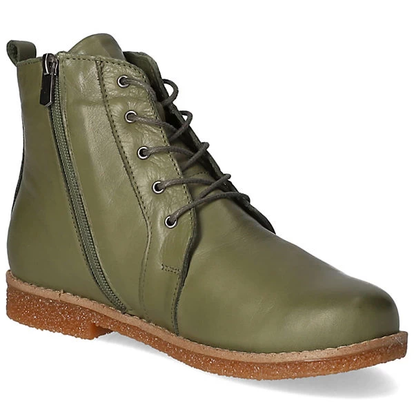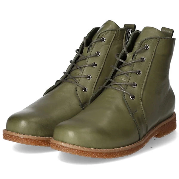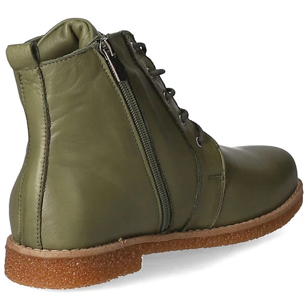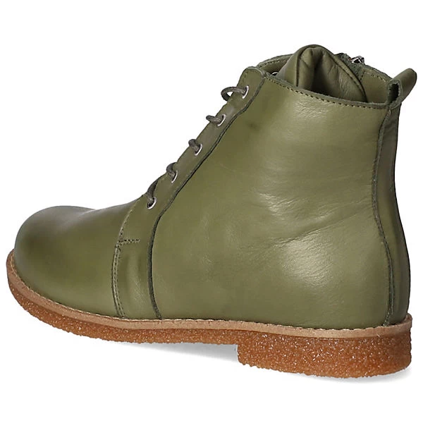 Andrea Conti Damen Schnürstiefeletten/ Ankle Boots Grün Glattleder – Schnürung plus Reißverschluss – verstärkter Zehen- und Fersenbereich – gepolsterte und herausnehmbare Leder-Decksohle – flexible, rutschhemmende Laufsohle – praktische Anziehlasche – ca. 2 cm Blockabsatz